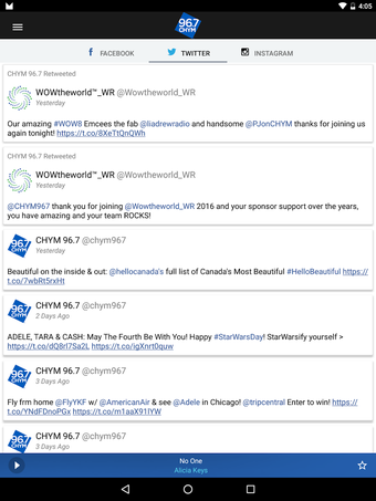 96.7 CHYM KitchenerはAndroid 9.0以上で動作します。現在のアプリのバージョンは4.8で、英語のみで実行できます。